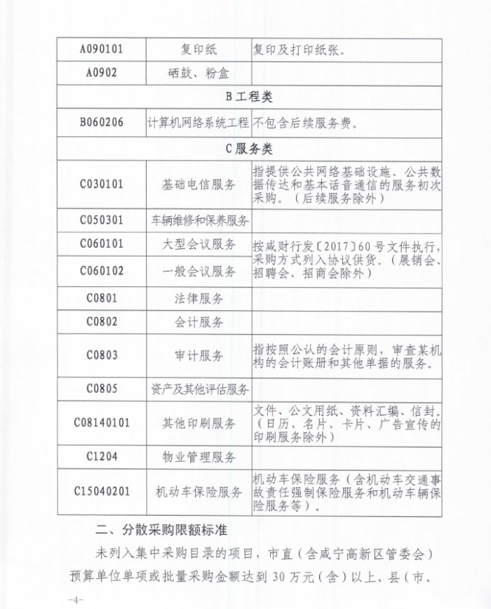 → 市人民政府办公室关于印发咸宁市2019-2020年政府集中采购目录及标准的通知 咸政办发【2017】48号 正文