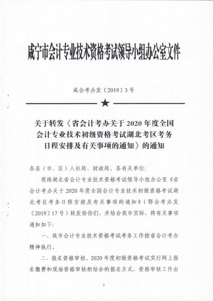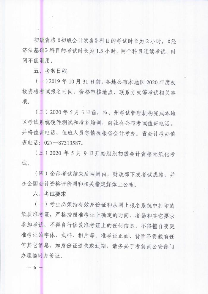省会计考办关于2020年度全国会计专业技术初级资格考试湖北考区考务日程安排及有关事项的通知