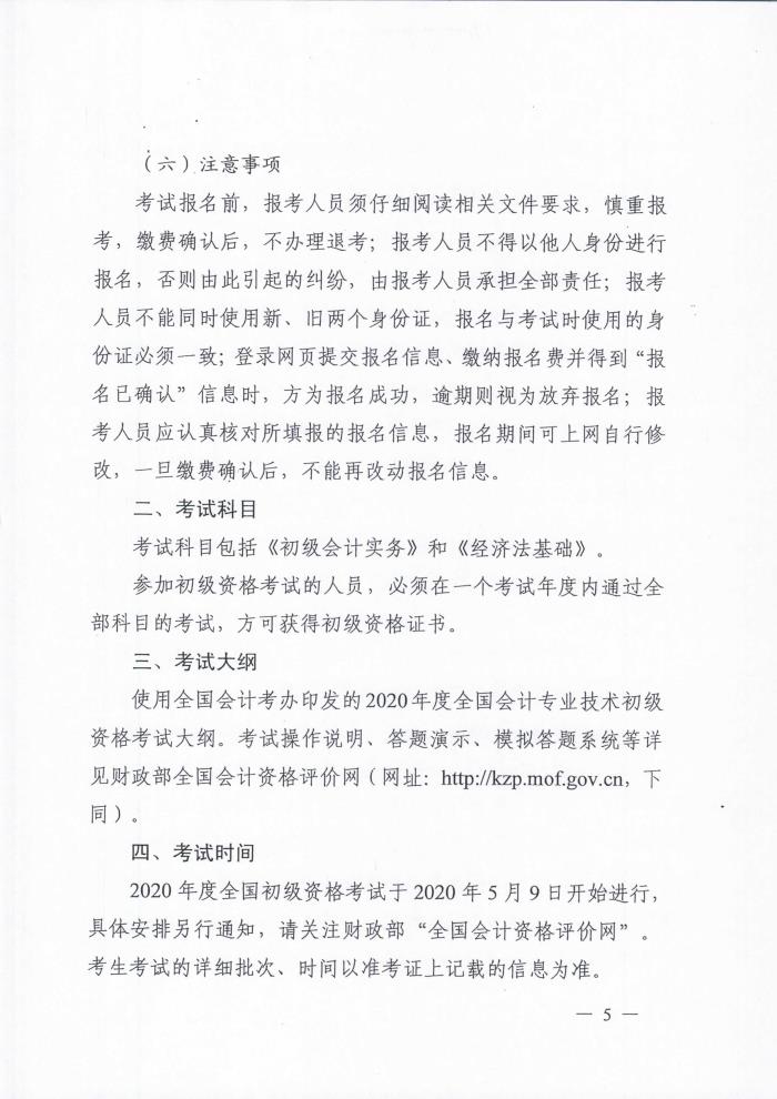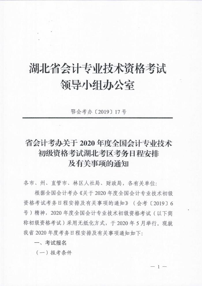 → 省会计考办关于2020年度全国会计专业技术初级资格考试湖北考区考务日程安排及有关事项的通知 正文