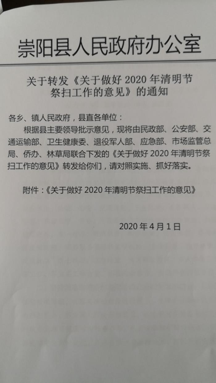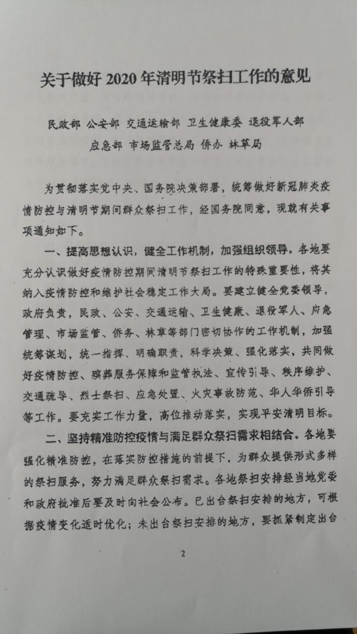 → 关于转发《关于做好2020年清明节祭扫工作的意见》的通知 正文