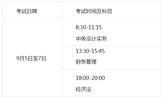 (一)2020年度全国会计专业技术中级资格考试仍于2020年9月5日至7日举行,共3批次,各科目考试时间及时长如下: