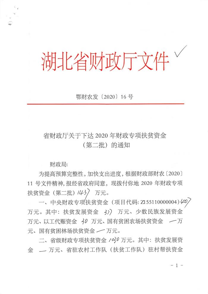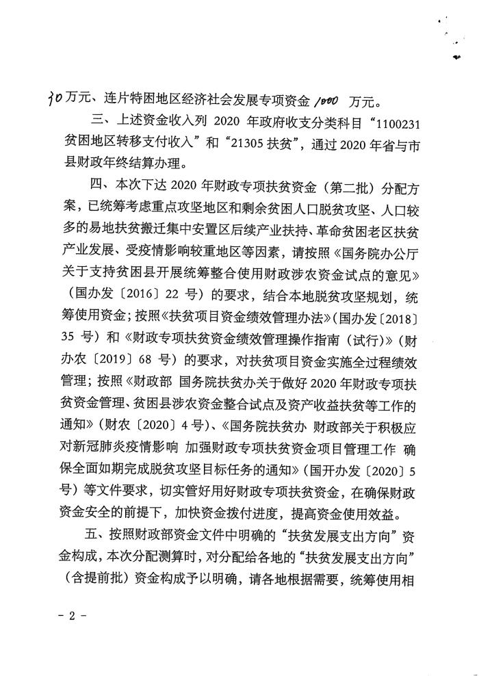 → 省财政厅关于下达2020年财政专项扶贫资金(第二批)的通知 正文