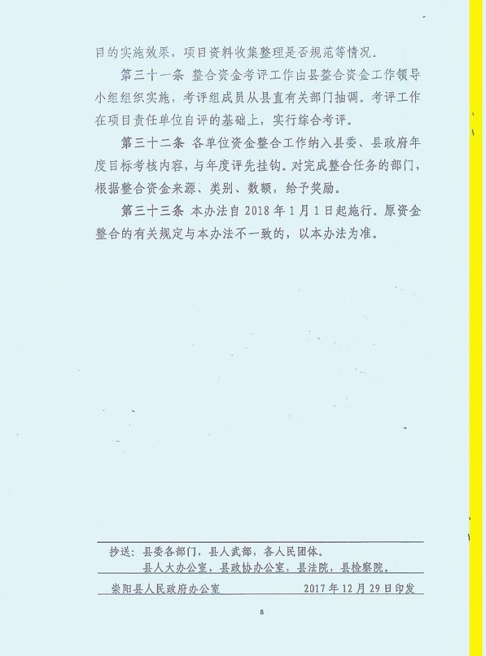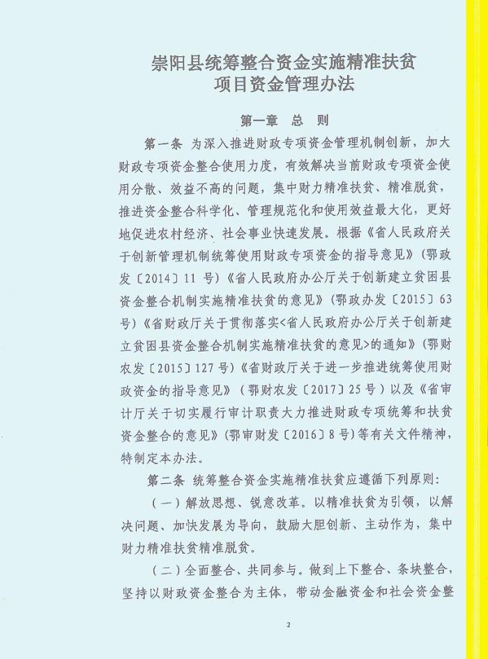 → 县人民政府办公室关于印发崇阳县统筹整合资金实施精准扶贫项目资金管理办法的通知 崇政办发【2017】82号 正文
